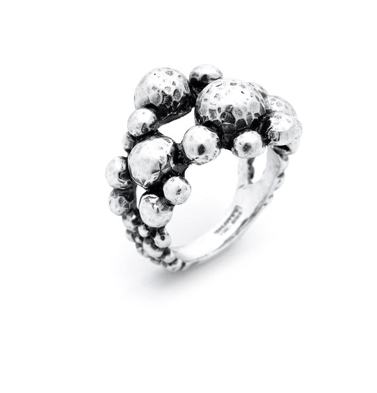 Anello argento 925/°°° a fascia della collezione Bubbles con sferette martellate. Realizzato a mano in Italia. Referenza 11573