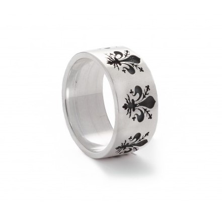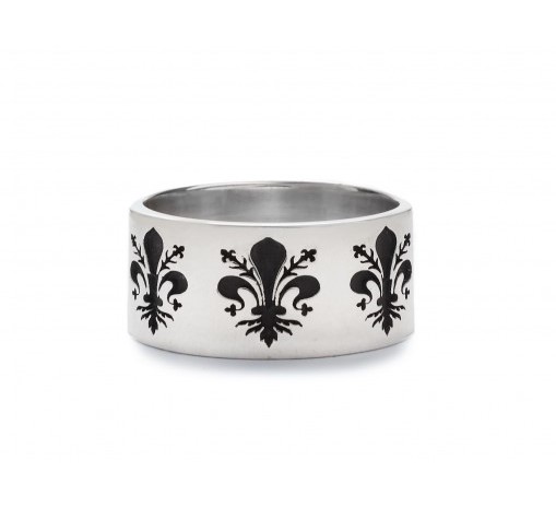 Anello fascia 12 millimetri in argento 925/°°° con gigli. Realizzato a mano a Firenze. Referenza AN1007