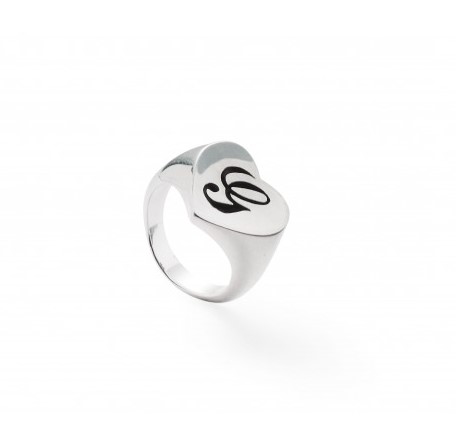 Anello cavaliere in argento 925/°°° a forma di cuore con lettera incisa a scavo .Realizzato a mano a Firenze. Referenza AN1085