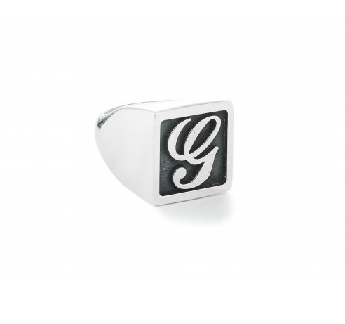 Anello cavaliere in argento 925/°°° con lettera bassorilievo su fondo brunito .Realizzato a mano a Firenze. Referenza AN1035