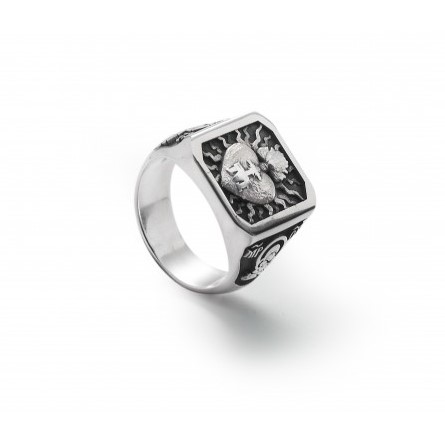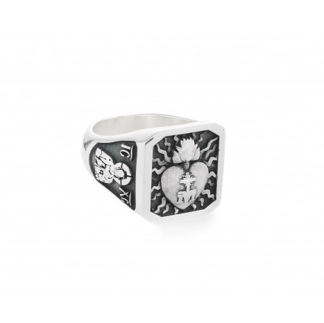 Anello cavaliere in argento 925/°°° con cuore sacro.