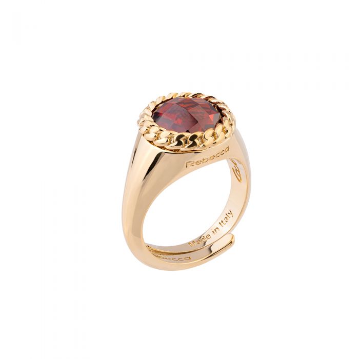 Anello della collezione Cocktail in bronzo placcato oro 24kt. Con pietra idrotermale rossa. Misura regolabile