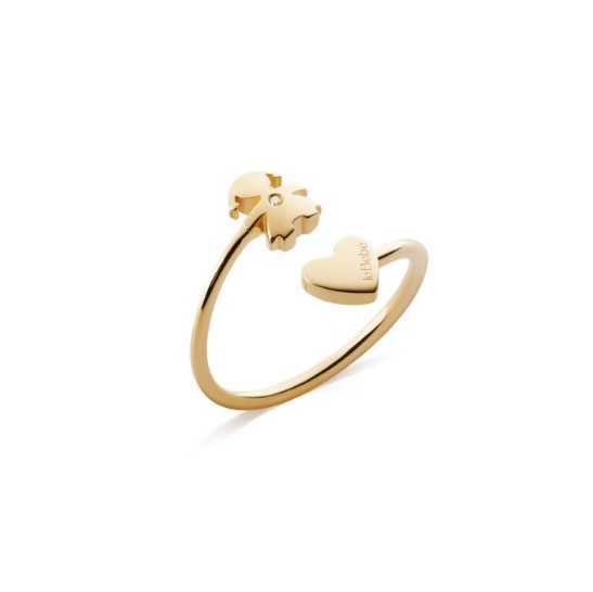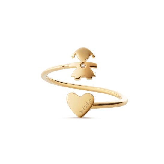 Anello contrariè in oro giallo 9kt con cuoricino e sagoma bimba con brillantino. Collezione Les Petits. Referenza LBB703.