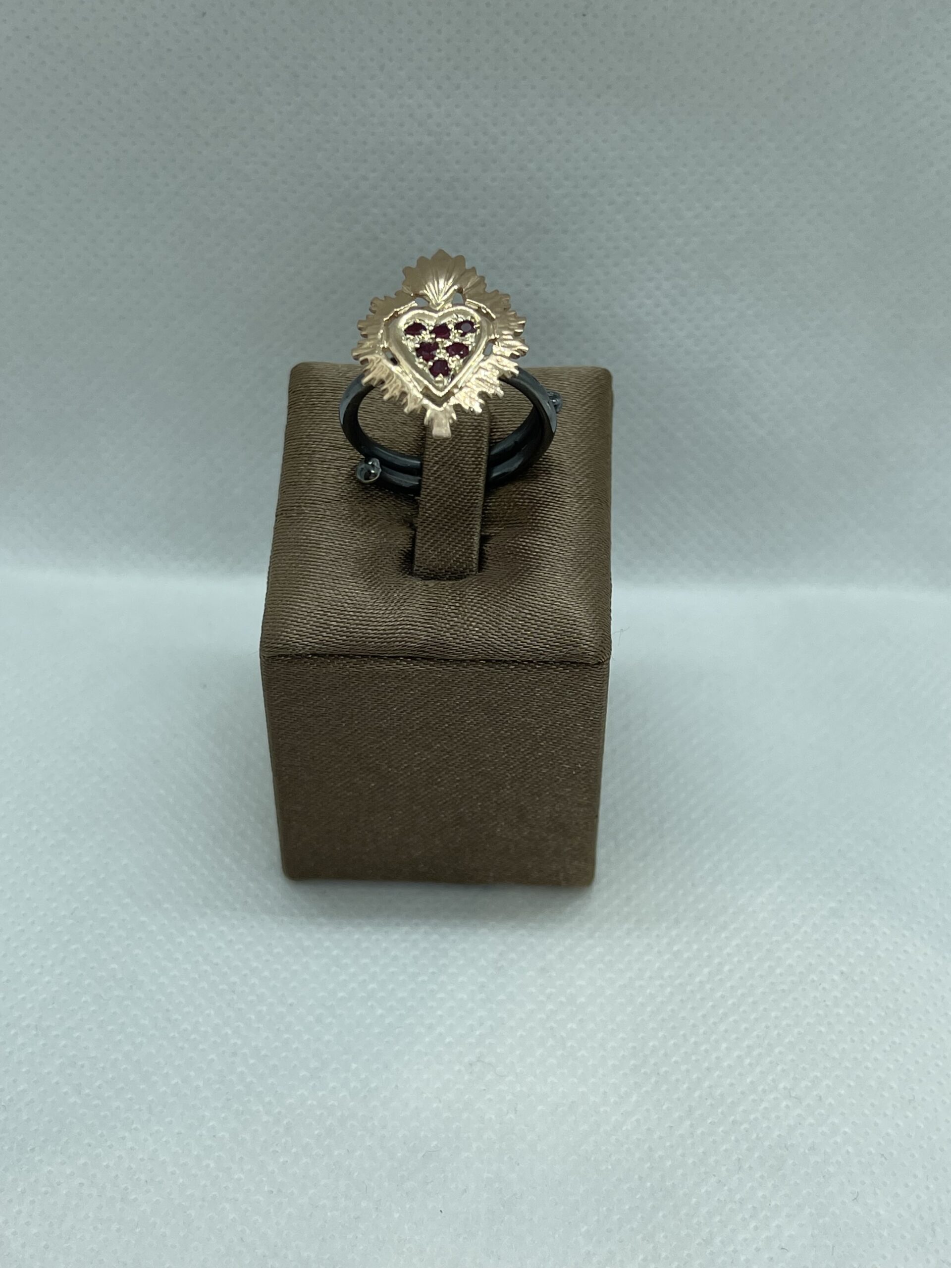 Anello in argento 925 gambo brunito con cuore sacro con radici di rubino. Misura regolabile. Realizzato a mano in Italia. Referenza AN3251
