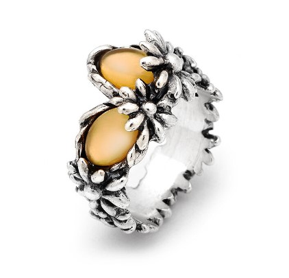 Anello in argento 925/°°° con madreperla color oro giallo doppiata con cristallo di rocca.