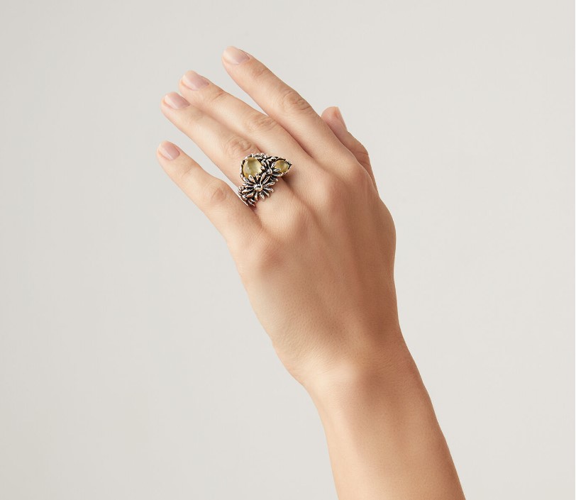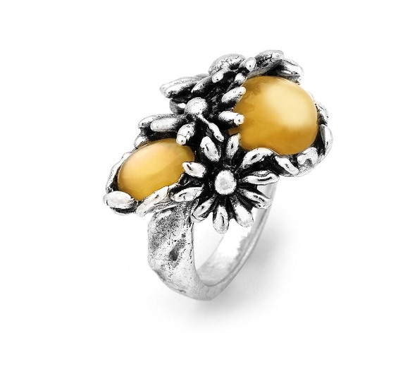 Anello argento 925/°°° con madreperla giallo oro doppiata con cristallo di rocca. Realizzato a mano in Italia. Referenza 11738
