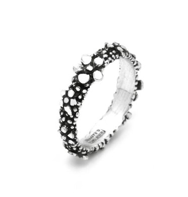 Anello fascia piccola argento 925/°°° con elementi floreali della collezione Millefiori. Realizzato a mano in Italia. Referenza 11697