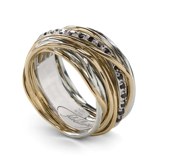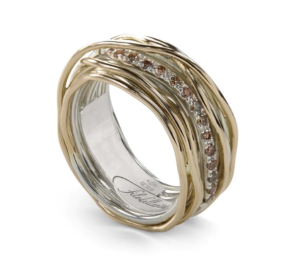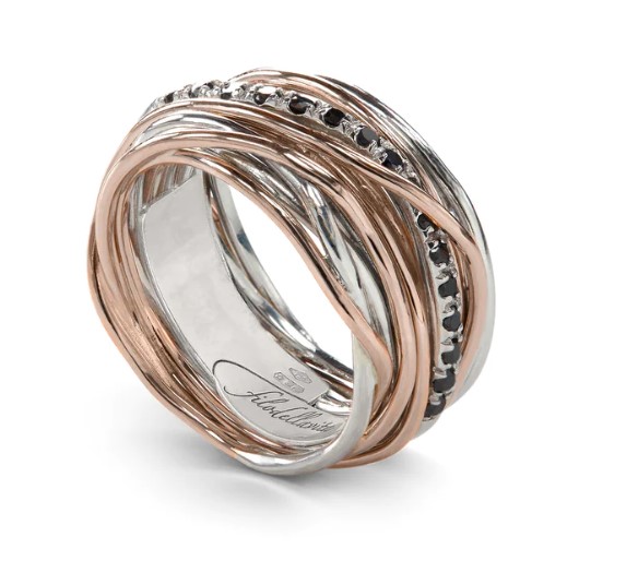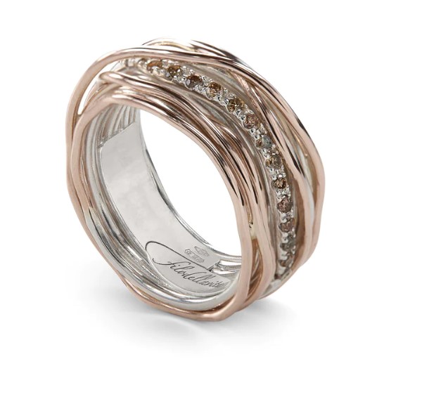 Anello filodellavita classic collection in argento 925/°°° arricchito con palladio e oro rosa 9kt. Versione con 7 fili con diamanti 0,21 ct totali. Intrecciato a mano. Referenza AN13ARBN