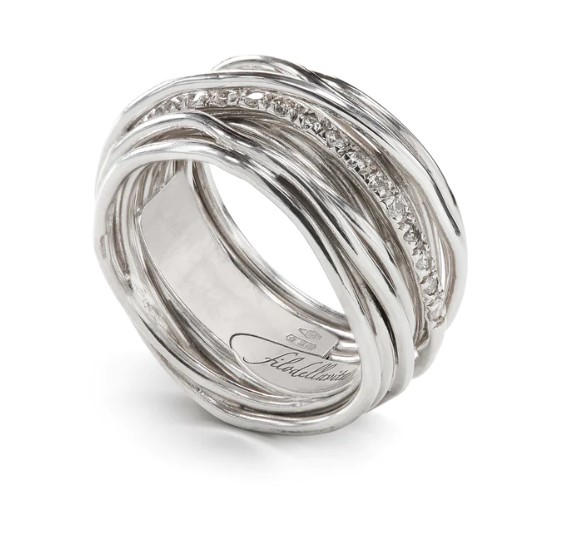 Anello filodellavita classic collection in argento 925/°°° arricchito con palladio. Versione con 13 fili con diamanti 0,21 ct totali. Intrecciato a mano. Referenza AN13ABT