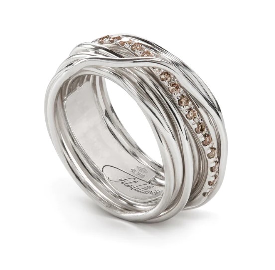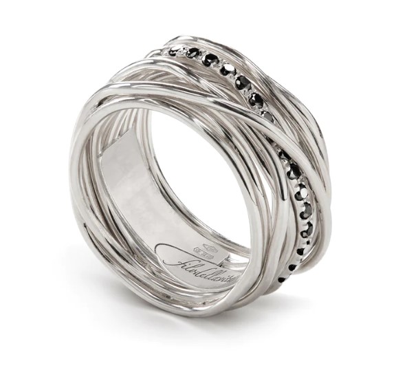 Anello filodellavita classic collection in argento 925/°°° arricchito con palladio. Versione 13 fili con diamanti neri 0,21 ct. Intrecciato a mano. Referenza AN13ABR