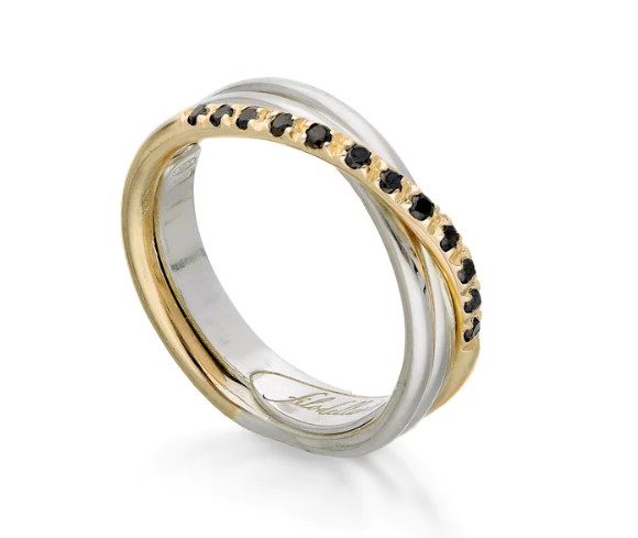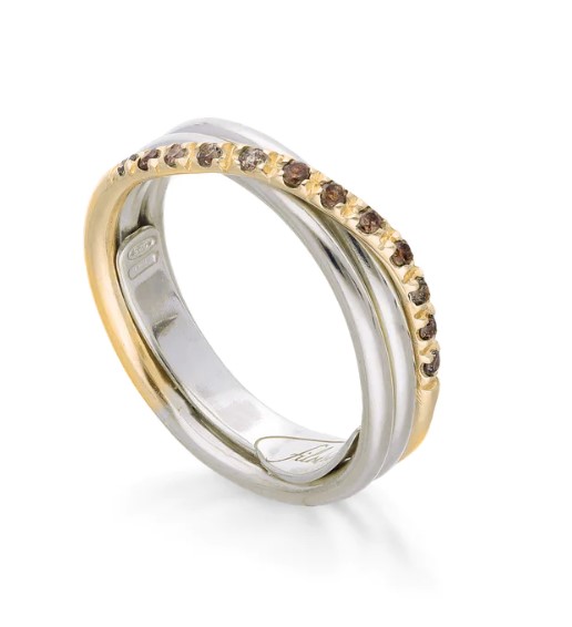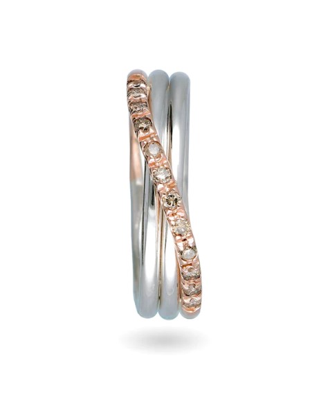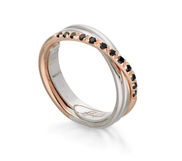 Anello filodellavita classic collection in argento 925/°°° arricchito con palladio e oro rosa 9kt. Versione con 3 fili con diamanti black 0,17 ct totali. Intrecciato a mano. Referenza AN8ARBN