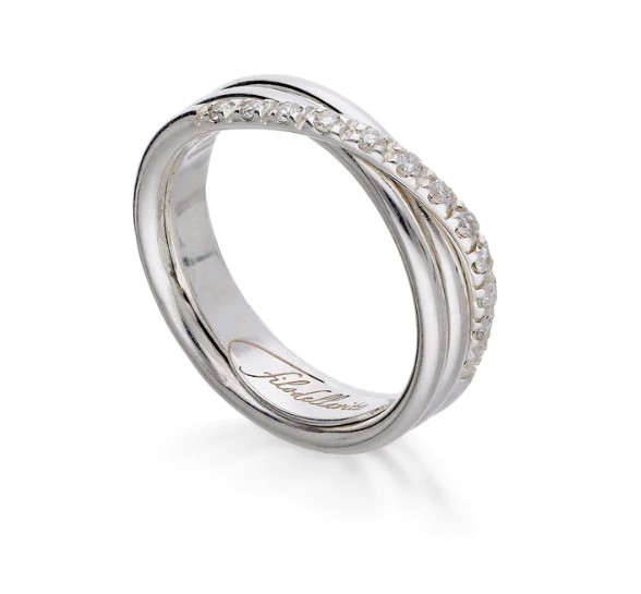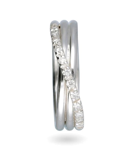 Anello filodellavita classic collection in argento 925/°°° arricchito con palladio. Versione 3 fili con diamanti 0,17 ct totali. Intrecciato a mano. Referenza AN8ABT