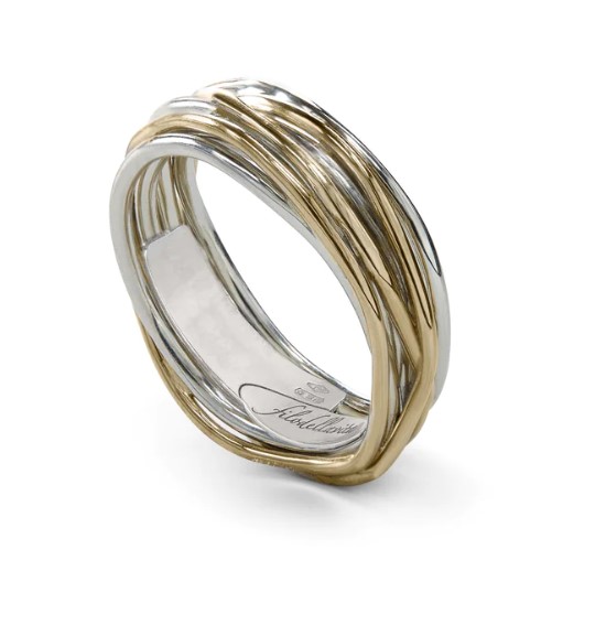 Anello in argento 925/°°° e oro 9kt 7 fili.