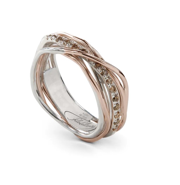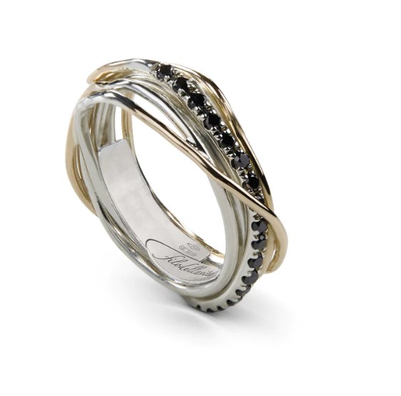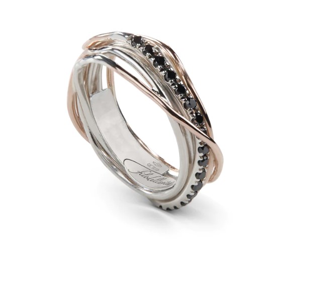 Anello filodellavita classic collection in argento 925/°°° arricchito con palladio e oro rosa 9kt. Versione con 7 fili con diamanti black 0,21 ct totali. Intrecciato a mano. Referenza AN7ARBN