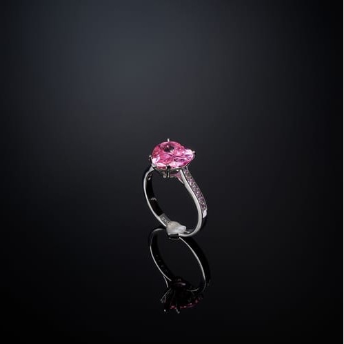 Anello Solitario della collezione Chiara Ferragni First Love. Colore: argento. Anello placcato rodio con zircone rosa taglio cuore centrale e zirconi rosa sul gambo. Referenza J19AVF02