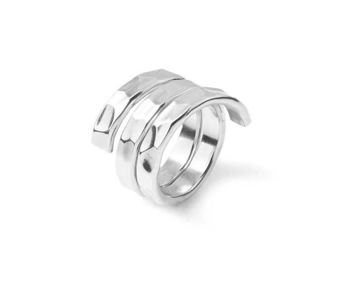Anello a fascia in argento 925/°°° martellato della collezione Flat. Altezza fascia 1,4 cm. Realizzato a mano in Italia. Referenza 11040