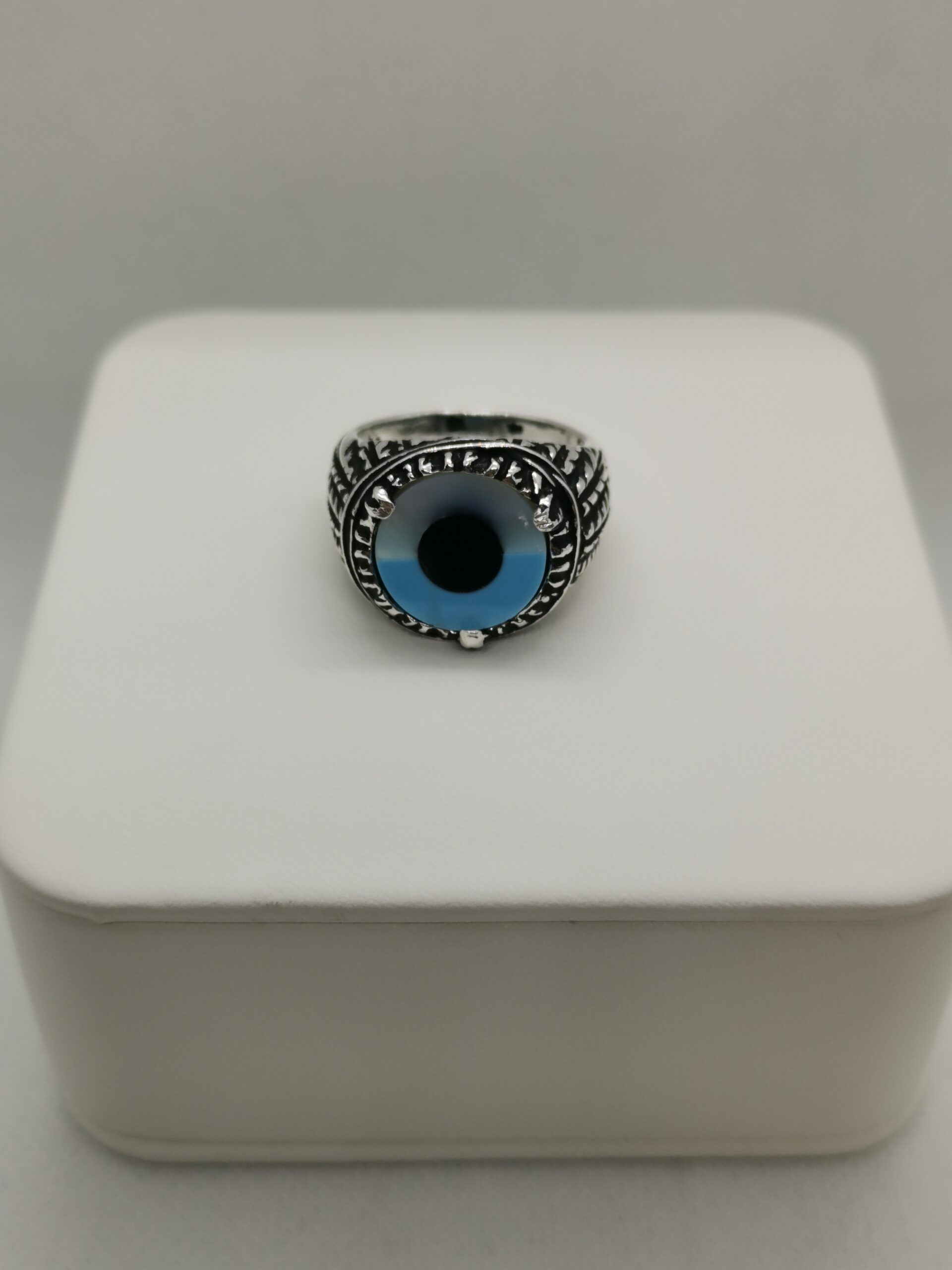 Anello in argento 925 realizzato a mano in Italia con madreperla e pietra celeste.