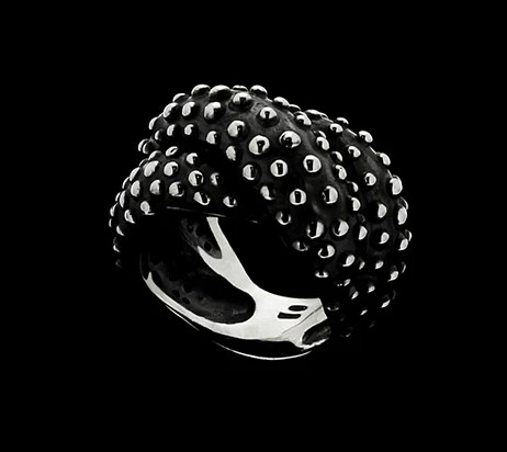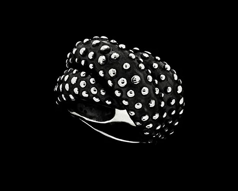 Anello in argento 925 brunito e lucidato con superficie ricoperta di palline.