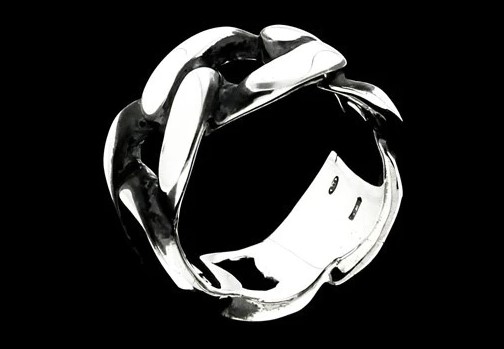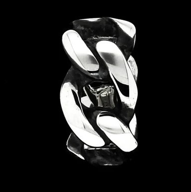 Anello a catena rigida in argento 925/°°° con finitura brunita e lucidata. Interamente realizzato a mano in Italia.