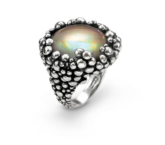 Anello argento 925/°°° della collezione Maui con madreperla doppiata con quarzo ed effetto perlage. Peso 24 grammi. Realizzato a mano in Italia. Referenza 10318