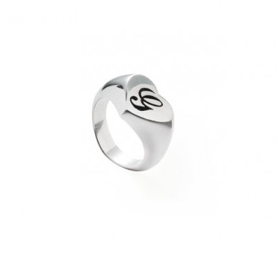 Anello cavaliere in argento 925/°°° a forma di cuore con lettera incisa a scavo .Realizzato a mano a Firenze. Referenza AN1132