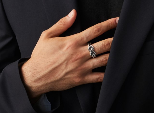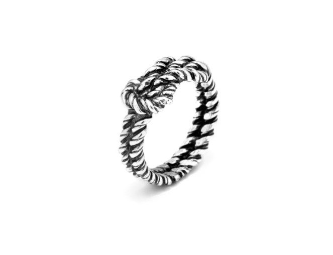 Anello in argento 925/°°° nodo marinaro con finitura brunita. Realizzato a mano in Italia. Referenza 11318