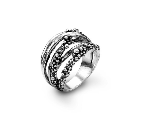 Anello a fascia in argento 925/°°° della collezione Perlage. Altezza fascia 1,6 cm. Realizzato a mano in Italia. Referenza 10250