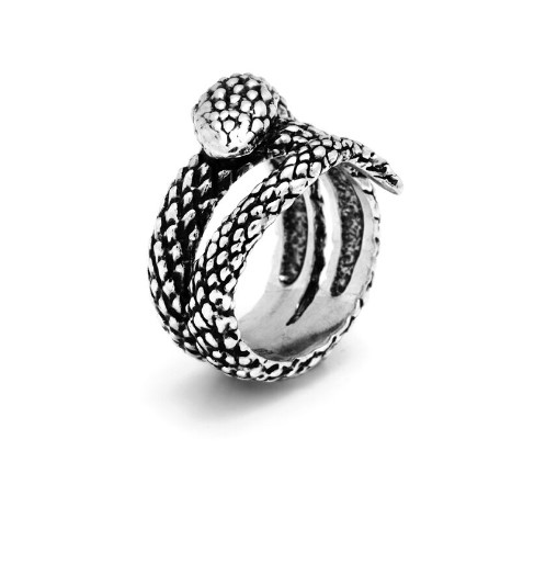 Anello argento 925/°°° a fascia della collezione Animalier a forma di serpente avvolgente con scaglie lucenti alternate al brunito. Altezza fascia 1,8 cm. Realizzato a mano in Italia. Referenza 11255