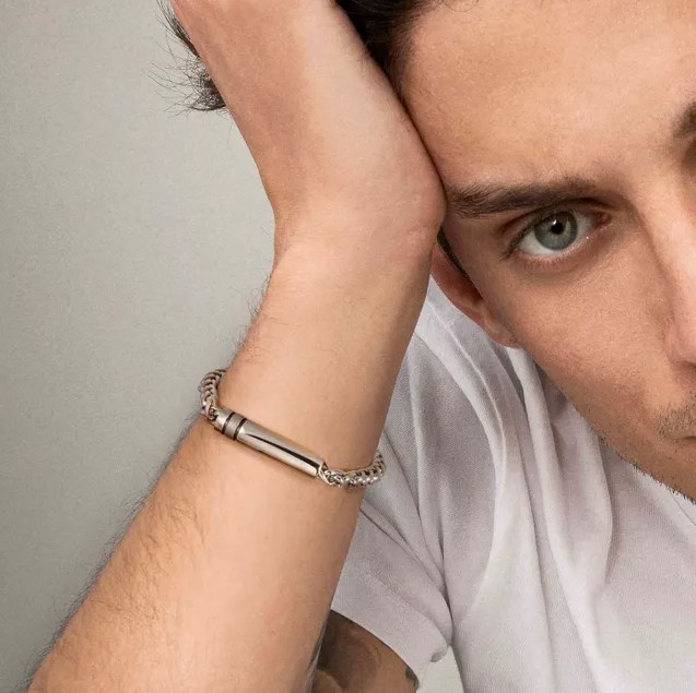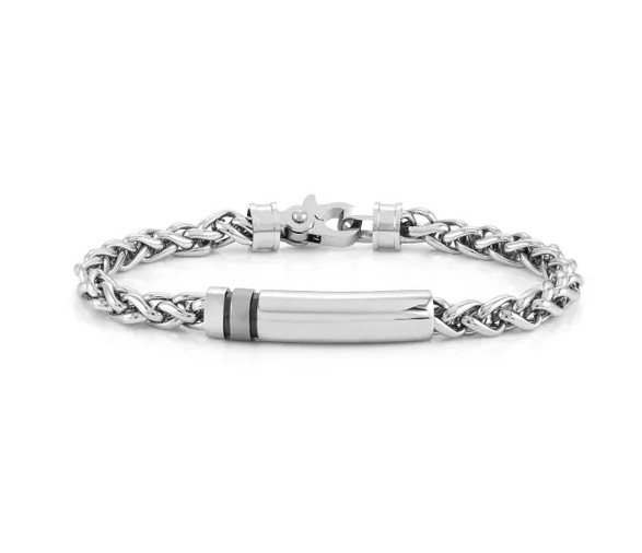 Bracciale in acciaio con targa tubolare centrale