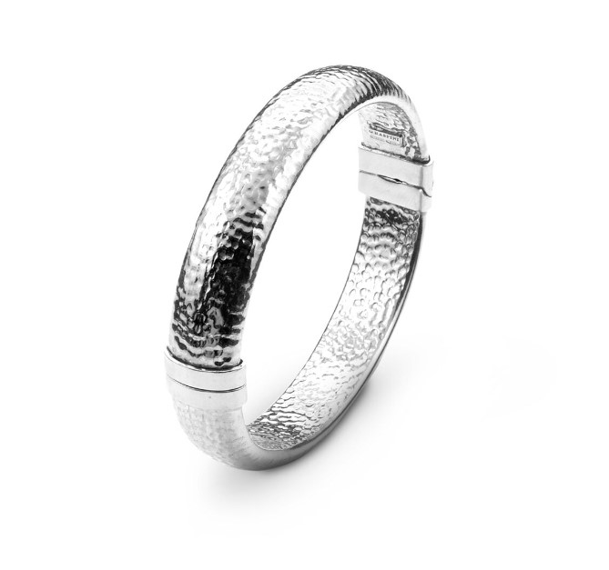 Bracciale Bangle in argento 925/°°° martellato della collezione Moon Rock. Apertura a molla. Misura ovale 5×6. Realizzato a mano in Italia. Referenza 10823