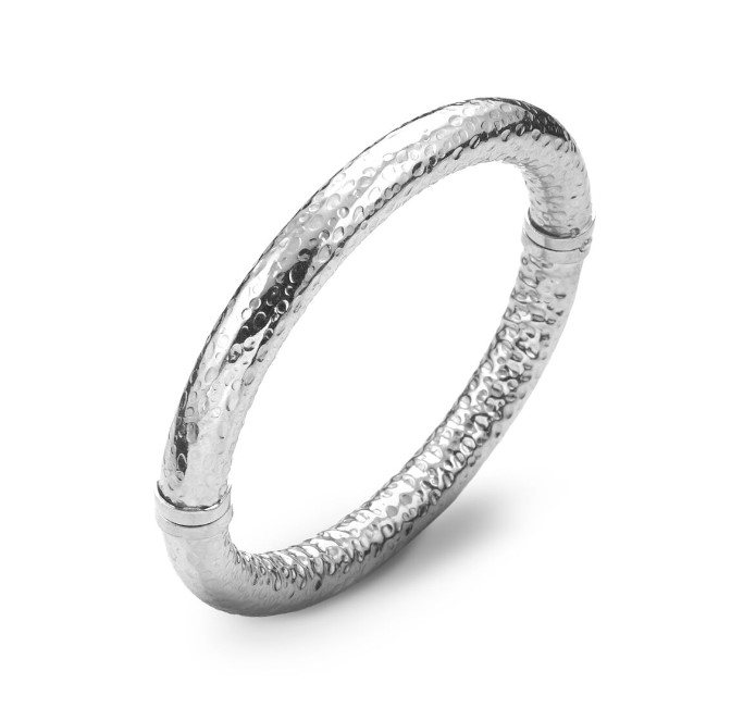 Bracciale Bangle in argento 925/°°° martellato della collezione Rock. Apertura a molla. Misura ovale 5×6. Realizzato a mano in Italia. Referenza 10239