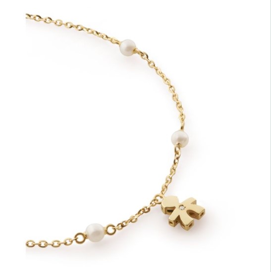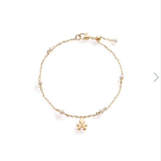 Bracciale oro giallo 9kt con perle e sagoma bimbo con brillantino.