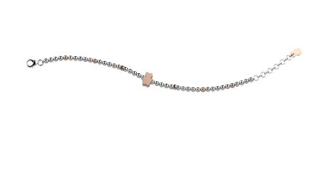 Bracciale in argento 925/°°°  sferette bianche e rosa con orsetto galvanica oro rosa al centro. Referenza NAN0199