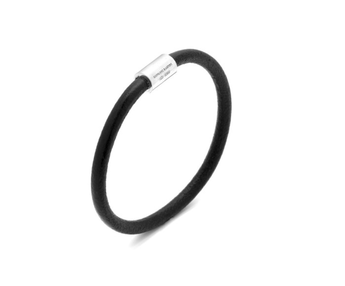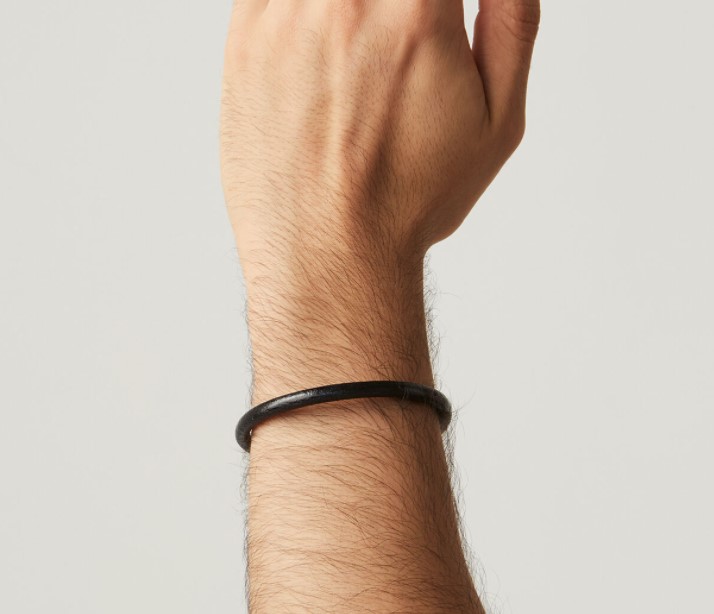 Bracciale in cuoio nero, lunghezza 21 cm, con chiusura in argento 925/°°° con calamita. Realizzato a mano in Italia. Referenza 11352