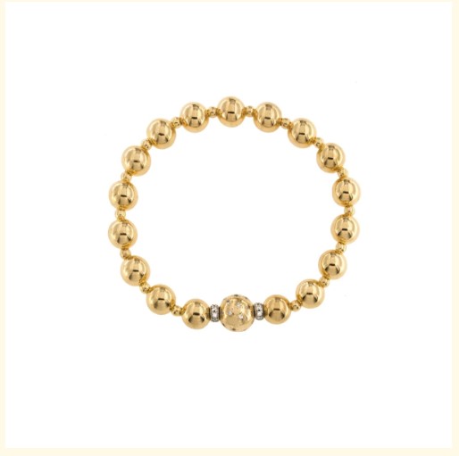 Bracciale elastico in argento 925/°°° placcato oro giallo 18kt con sfere di diverse misure tempestate di zirconi. Collezione Starball