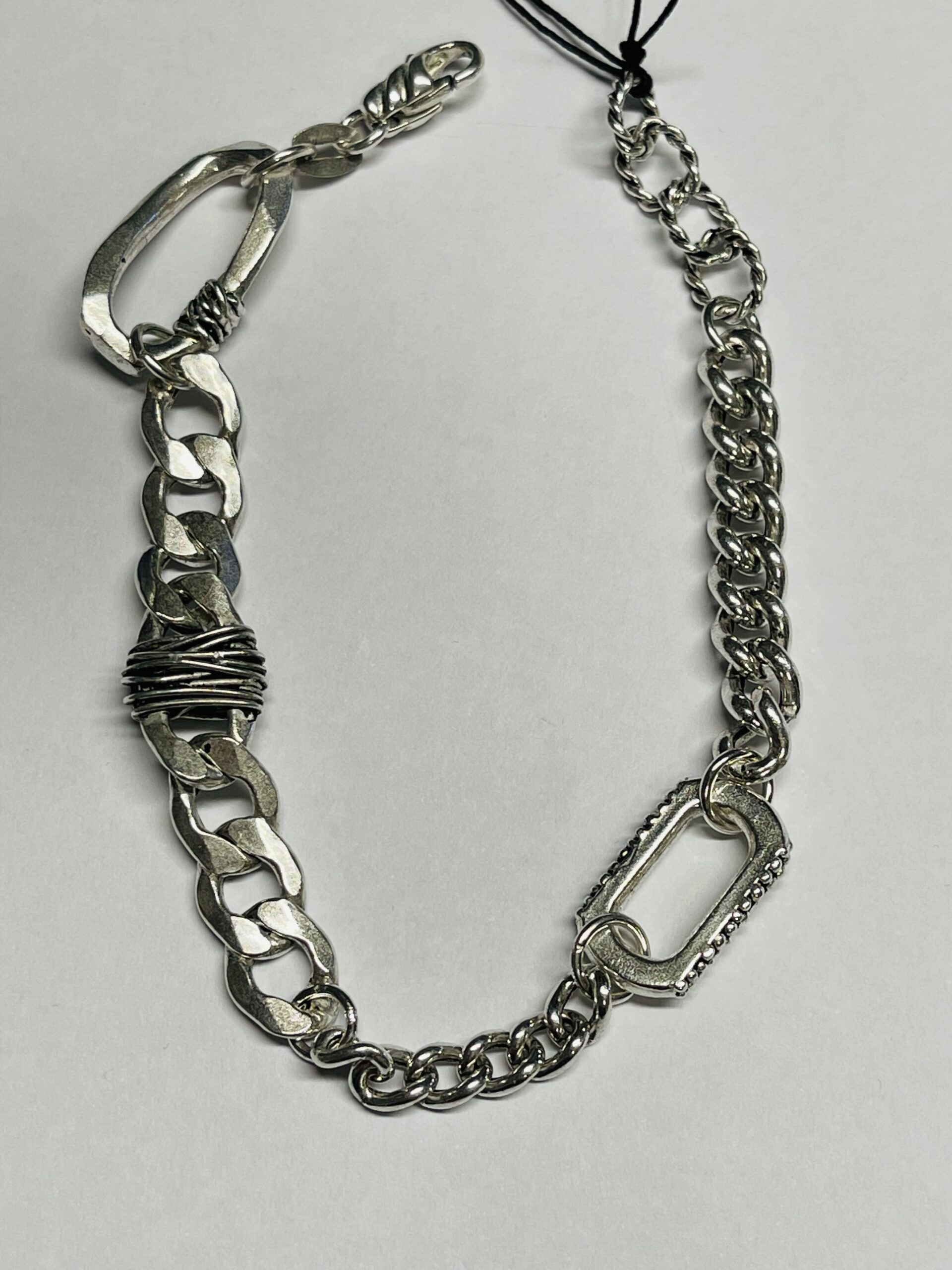 Bracciale in argento 925 realizzato a mano in Italia. Maglia alternata barbazzale grande con nodo, groumette piccola e groumette grande con giunzione lavorazione etrusca. Lunghezza 20-23 cm regolabile.