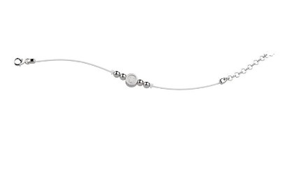 Bracciale con laccio bianco, palline in argento 925/°°° ed orsetto smalto bianco al centro. Misura regolabile. Chiusura con moschettone. Referenza NAN0175