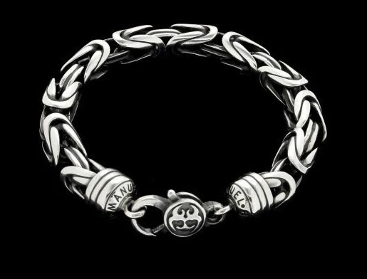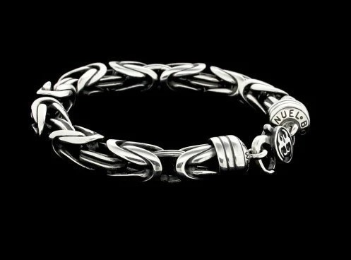 Bracciale a catena in argento 925/°°° con finitura brunita e lucidata con mochettone grande rifinito artigianalmente. Interamente realizzato a mano in Italia.