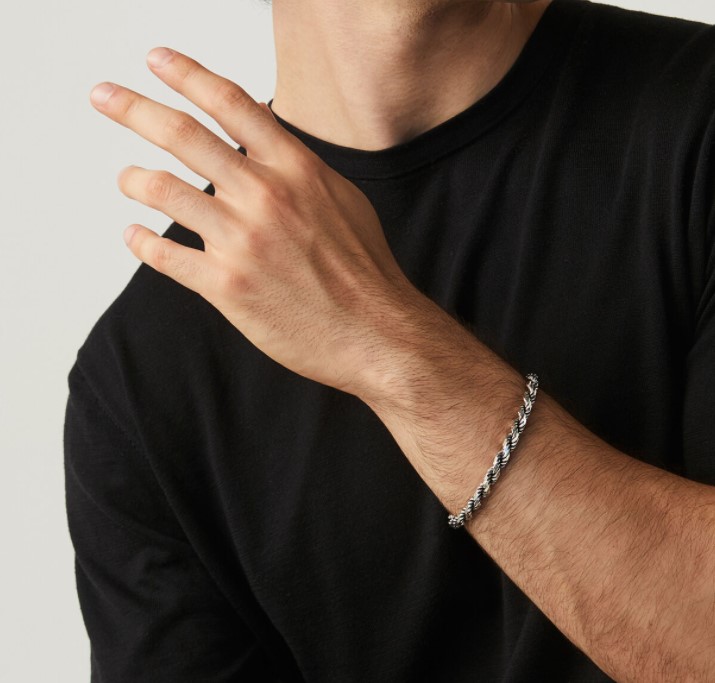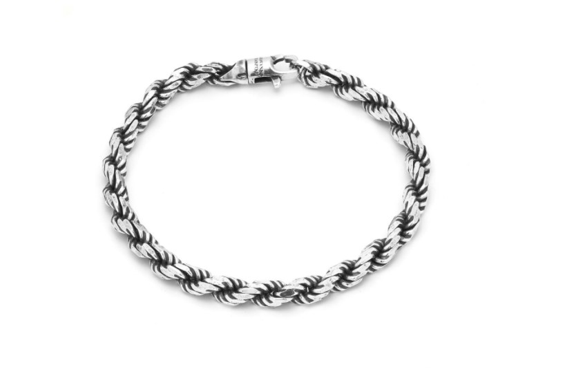 Bracciale in argento 925/°°° maglia torchon tubolare. Chiusura con moschettone. Lunghezza 21 cm. Realizzato a mano in Italia. Referenza 11346L