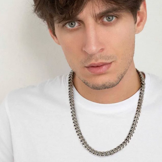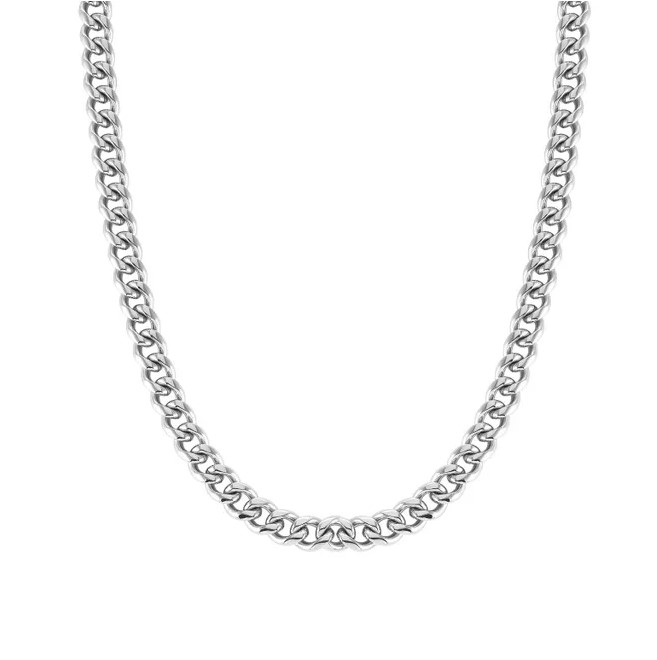 Collana in acciaio 316/304 maglia groumette bombata. Lunghezza 55 cm. Altezza maglia 0,8 cm.