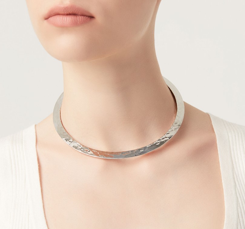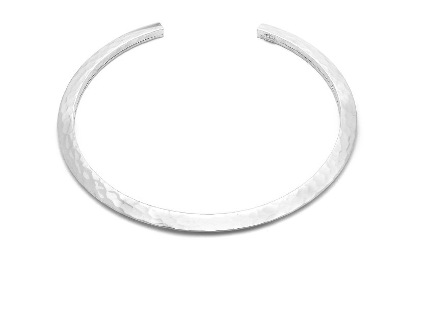 Collana rigida in argento 925/°°° con lavorazione martellata. Diametro 14 cm. Realizzato a mano in Italia. Referenza 11772
