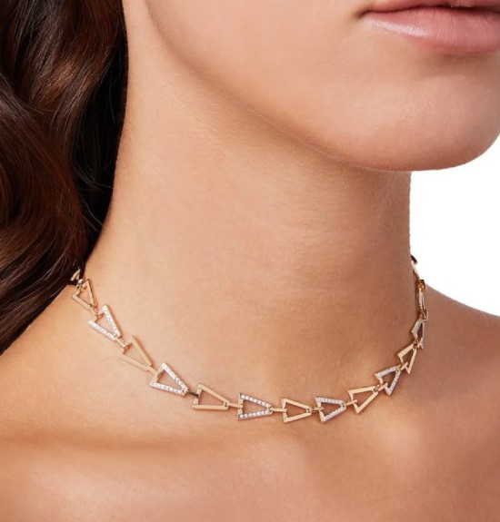 Collana in argento 925/°°° con placcatura in oro giallo e mini v alternate pavè di zirconi e lisce. Lunghezza 42cm