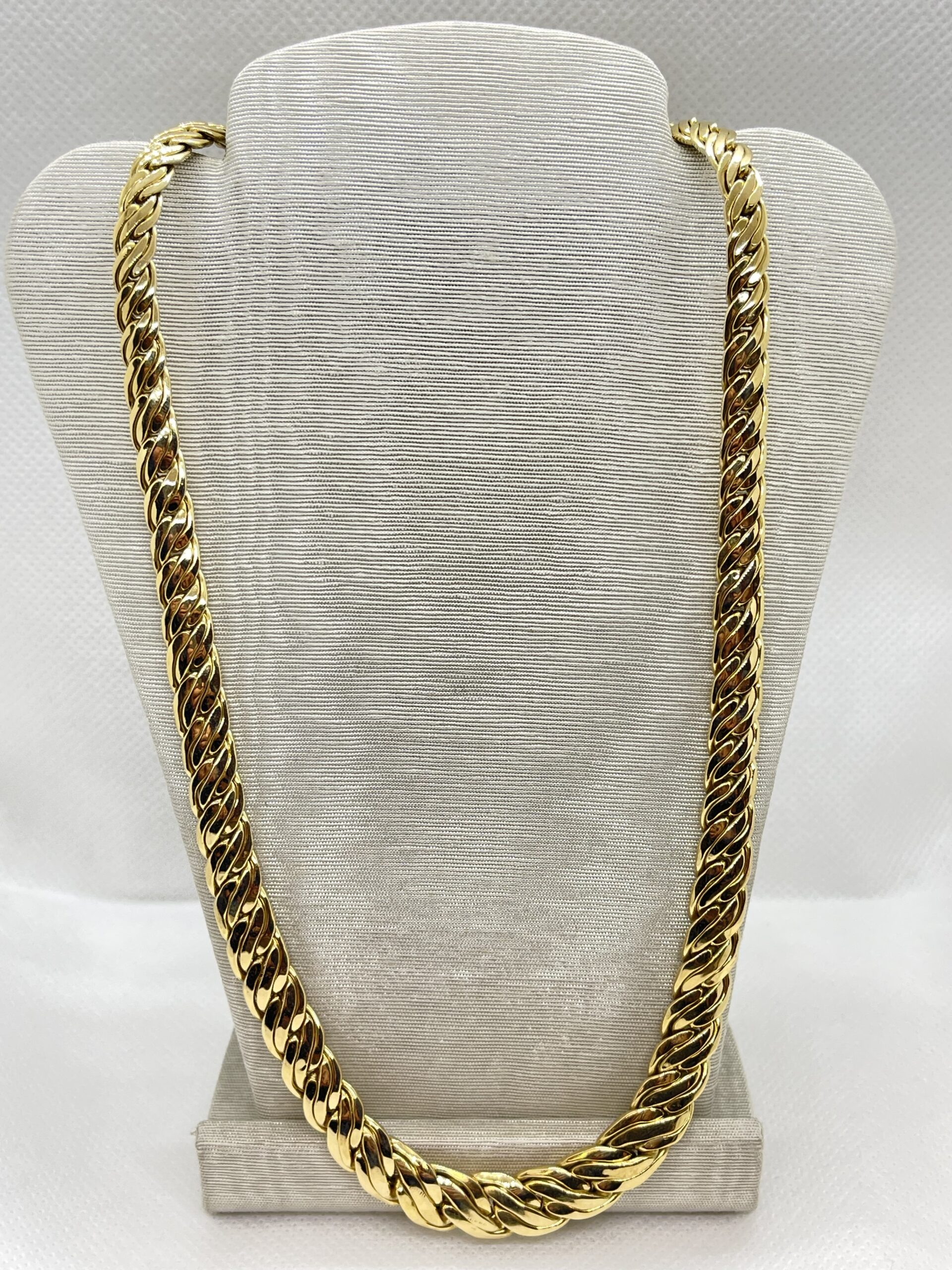 Collana in oro giallo 750/°°° schiacciata. Lunghezza 45 cm. Peso 22 grammi. Chiusura con moschettone.