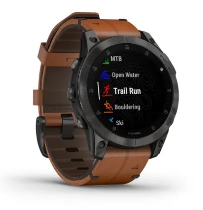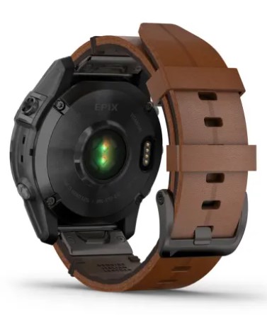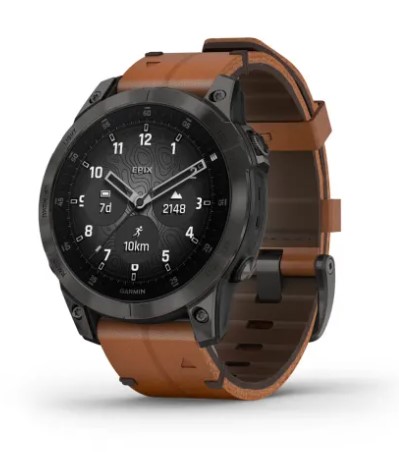 Smartwatch cassa in polimeri fibrorinforzati con ghiera e fondo cassa titanio. Impermeabilità 10 Atm. Memoria 16 GB. Dimensioni cassa 47 mm. Cinturino pelle chestnut. Quadrante AMOLED. Vetro zaffiro