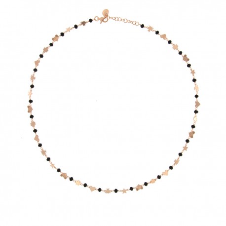 Girocollo in argento 925/°°° placcato oro rosa 18kt con micropietre nere. Lunghezza regolabile. Collezione I Sogni son Desideri