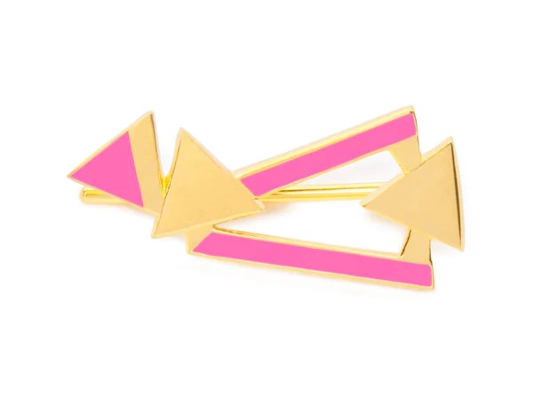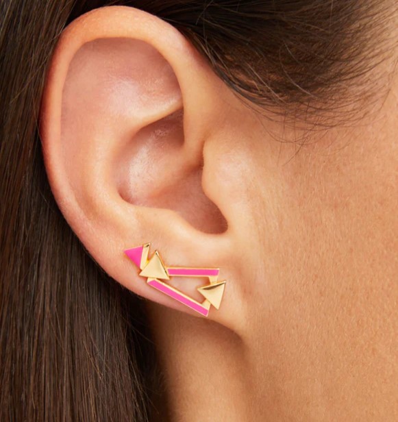 Monorecchino in argento 925/°°° placcato oro giallo con smalto fucsia. Da utilizzare sul lobo destro.