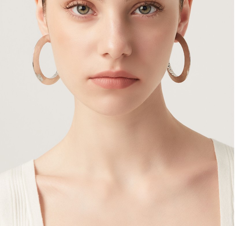 Orecchini cerchio in argento 925/°°° con lavorazione martellata. Realizzato a mano in Italia. Referenza 11776