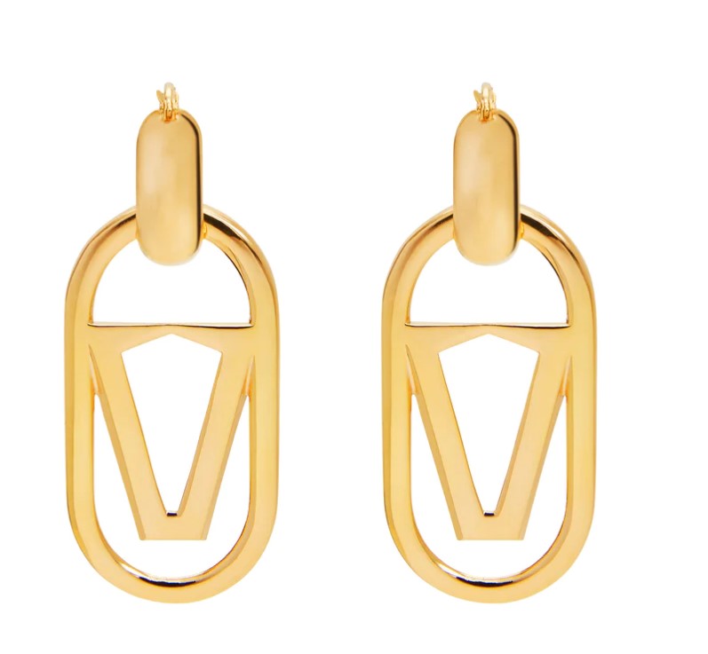 Coppia di orecchini pendenti in argento 925/°°° placcati oro giallo. Chiusura perno e farfallina. Lunghezza 5 cm
