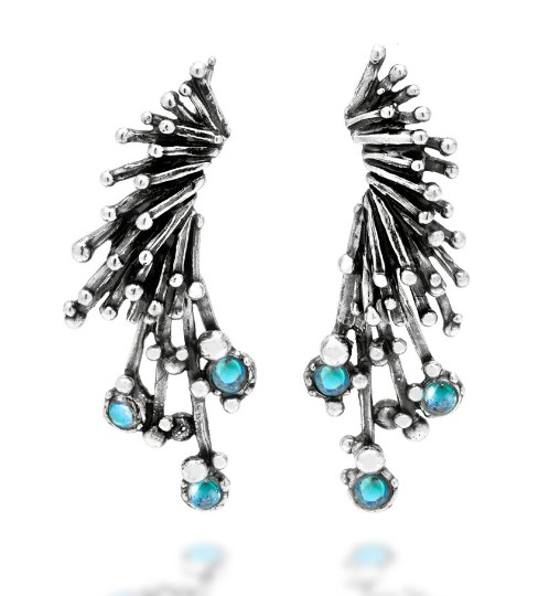 Orecchini pendenti in argento 925/°°° della collezione Fireworks con quarzi effetto arcobaleno. Chiusura perno e farfallina. Peso 10,5 singolo orecchino. Altezza 5,5 cm. Realizzato a mano in Italia. Referenza 11668