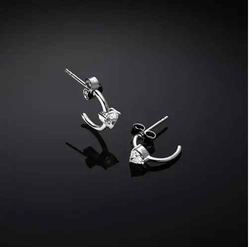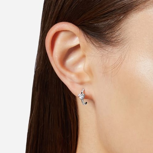 Orecchini cerchio in argento 925/°°° diametro 1,2 cm con zircone taglio cuore. Chiusura perno e farfallina. Collezione Silver.